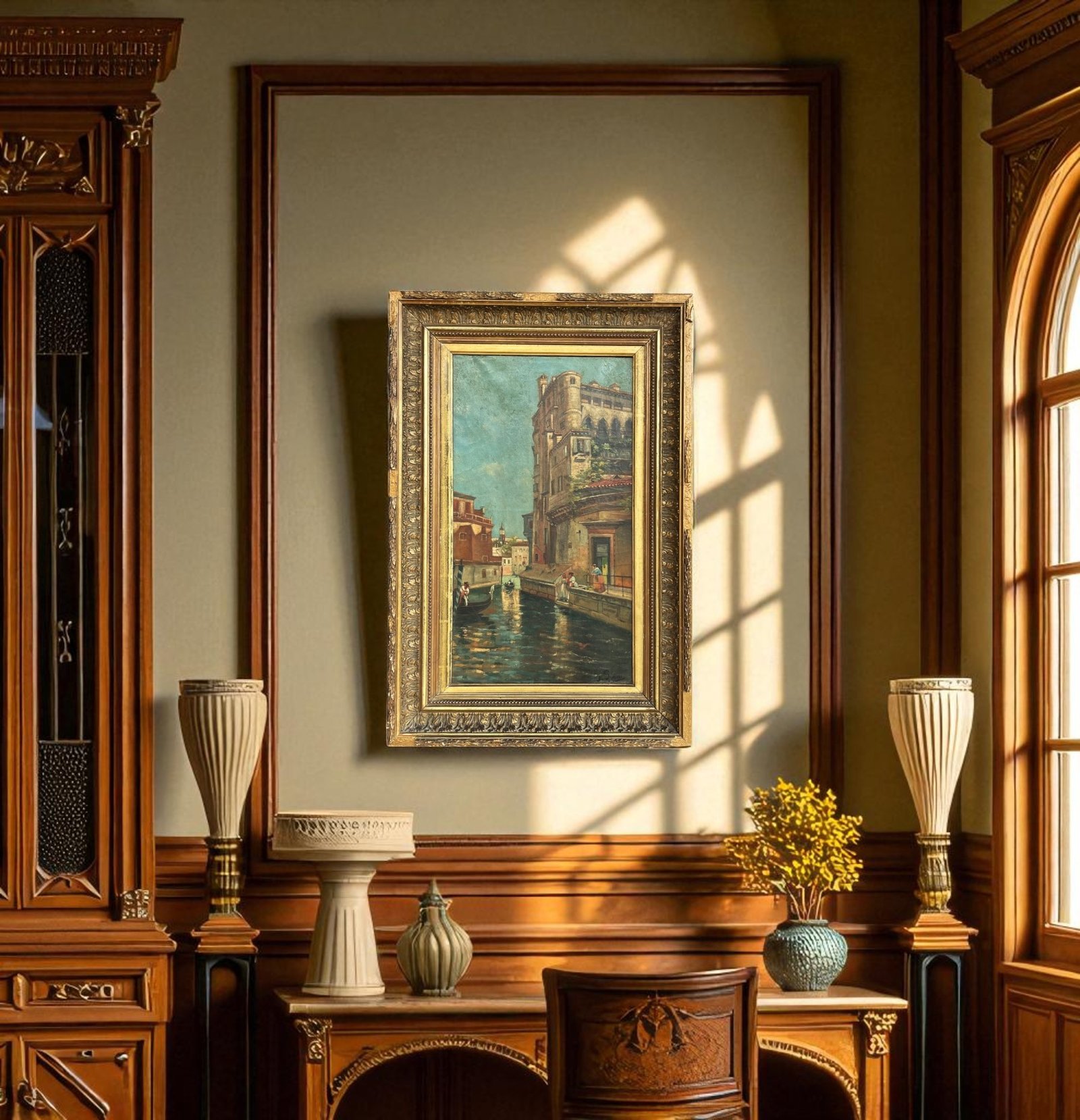 Antique Painting of a Canal in Venice, Italian School, Signed