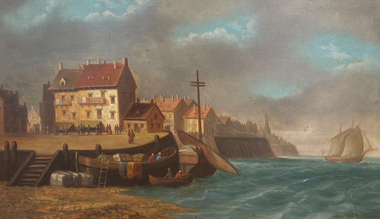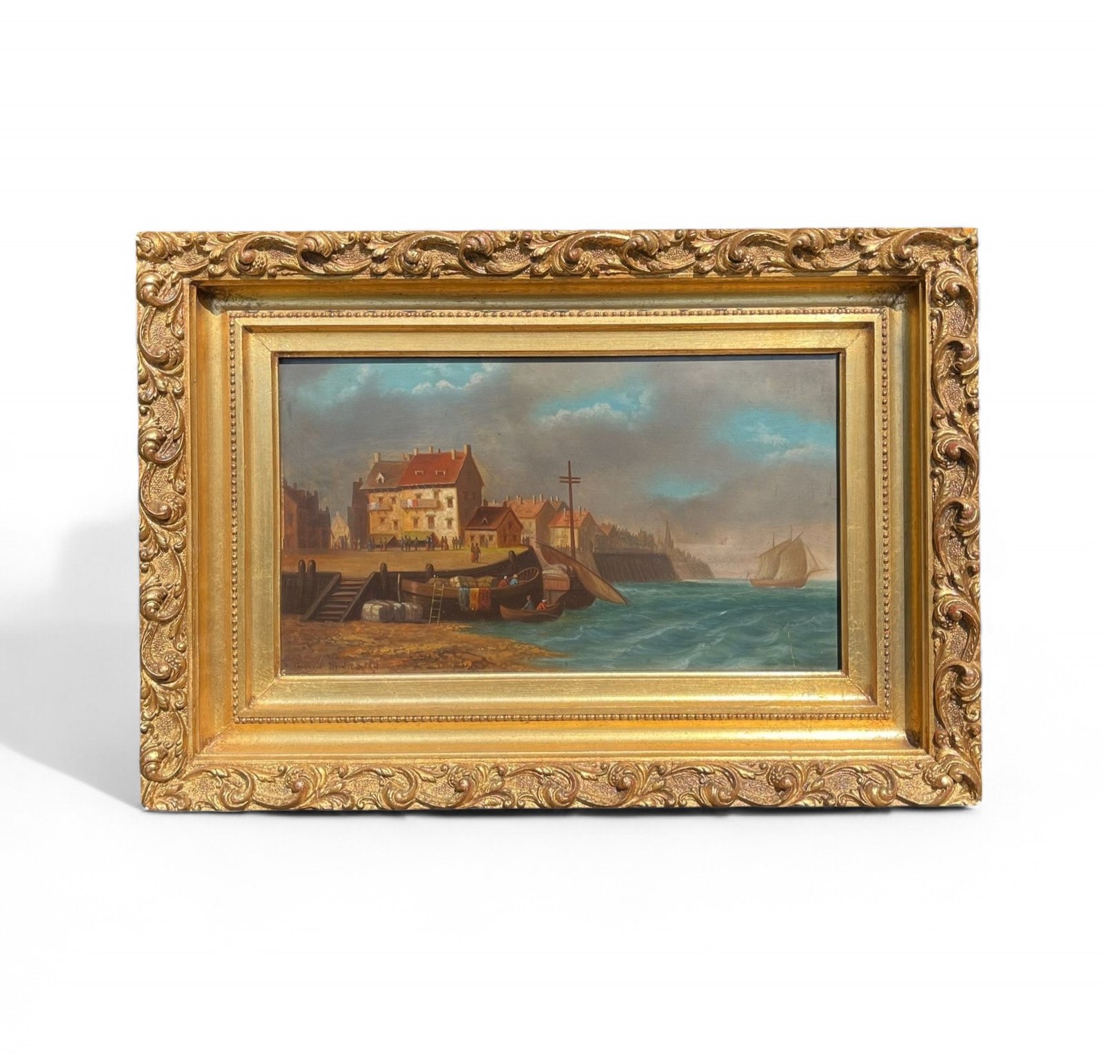 Antique Painting “The Small Harbor” by the listed French artist Ferdinand Bonheur (1817-1887)