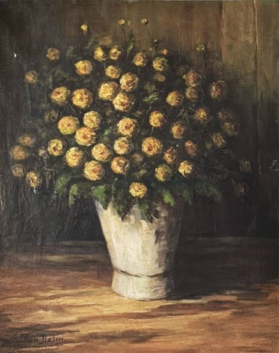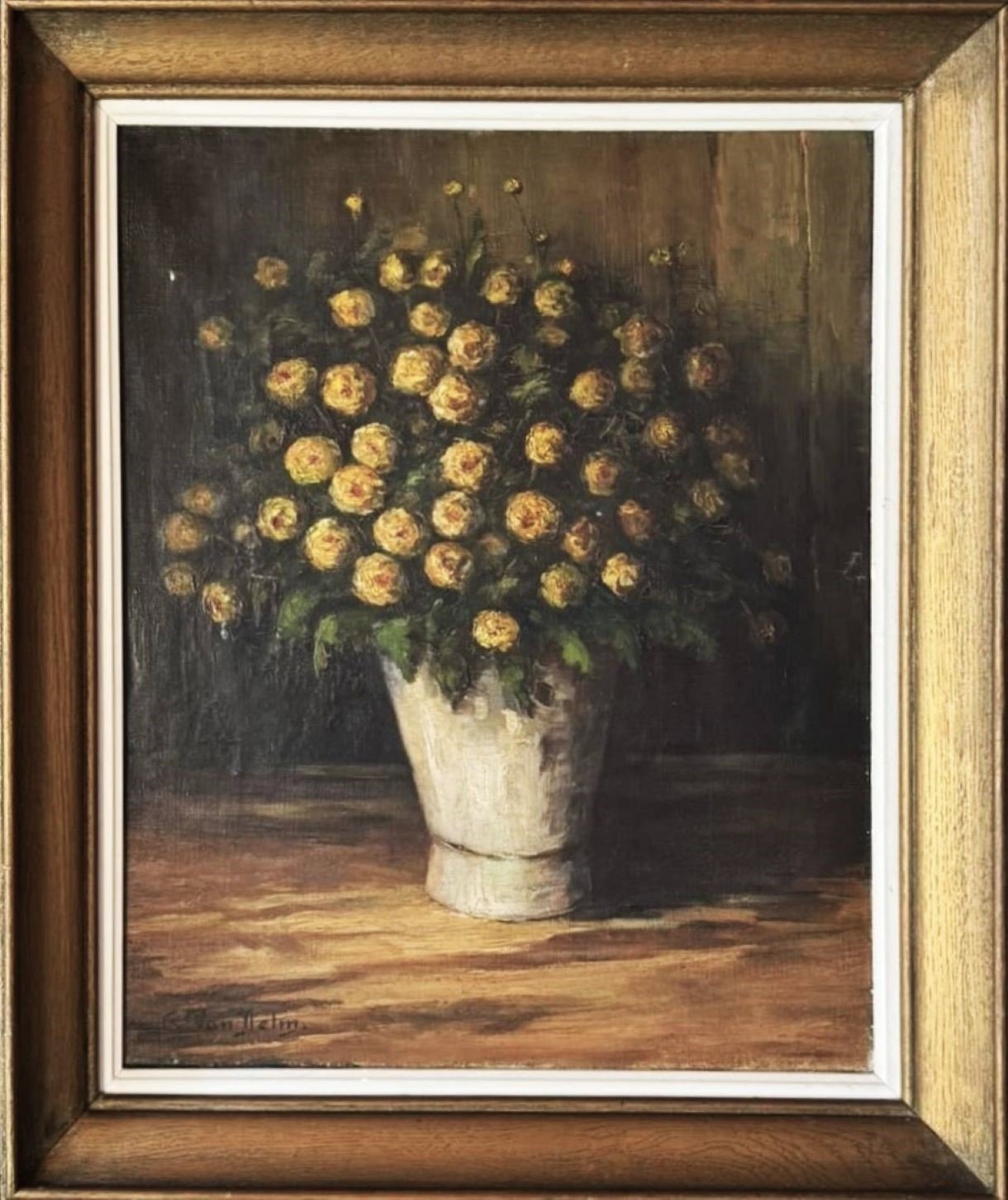 Vintage Floral Still Life Painting Yellow Roses • Karel Van Delm