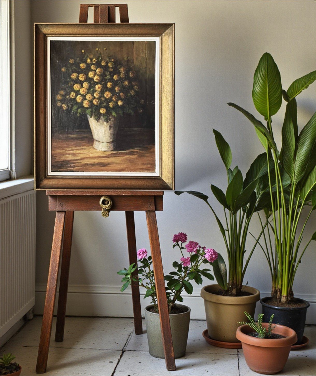 Bring timeless charm to your home with this vintage 1970s still life painting by Belgian artist Karel Van Delm. This beautifully detailed floral arrangement features warm yellow roses set against a dark background, creating a rich and atmospheric composition that suits both traditional and modern interiors.