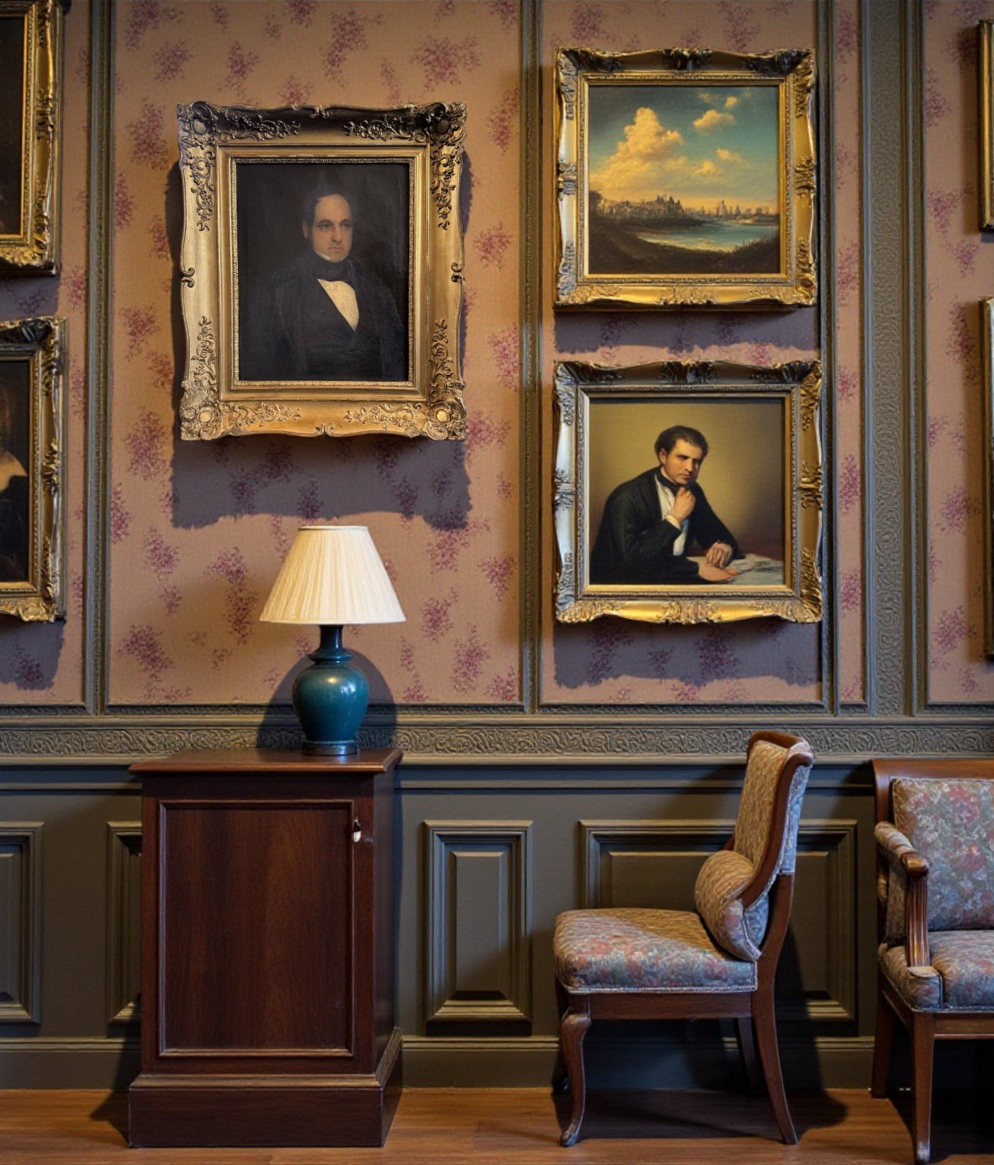 Add a touch of historic elegance to your home with this stately portrait of a gentleman. This work captures the refined style of the mid-19th century. The sitter is depicted in a dark coat with a white vest, set against a classic dark background that highlights his features.