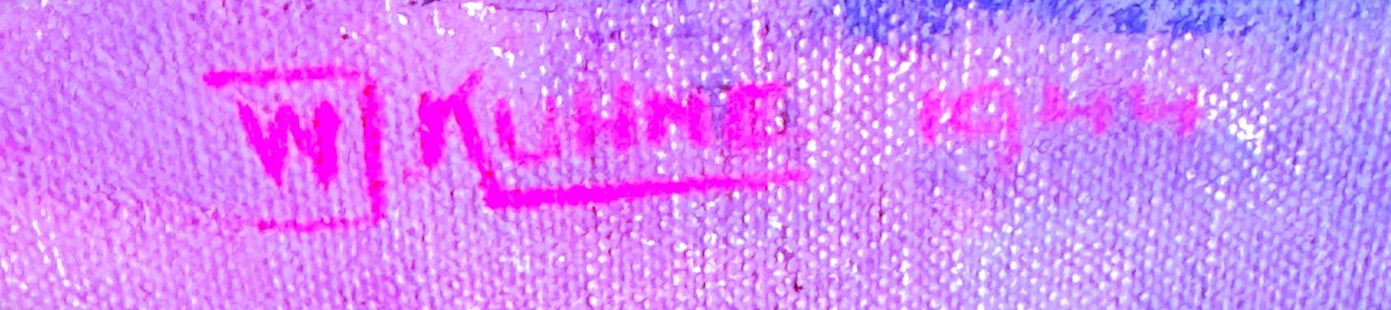 The painting is signed and dated 1944, confirming its authentic vintage character and historical value.
