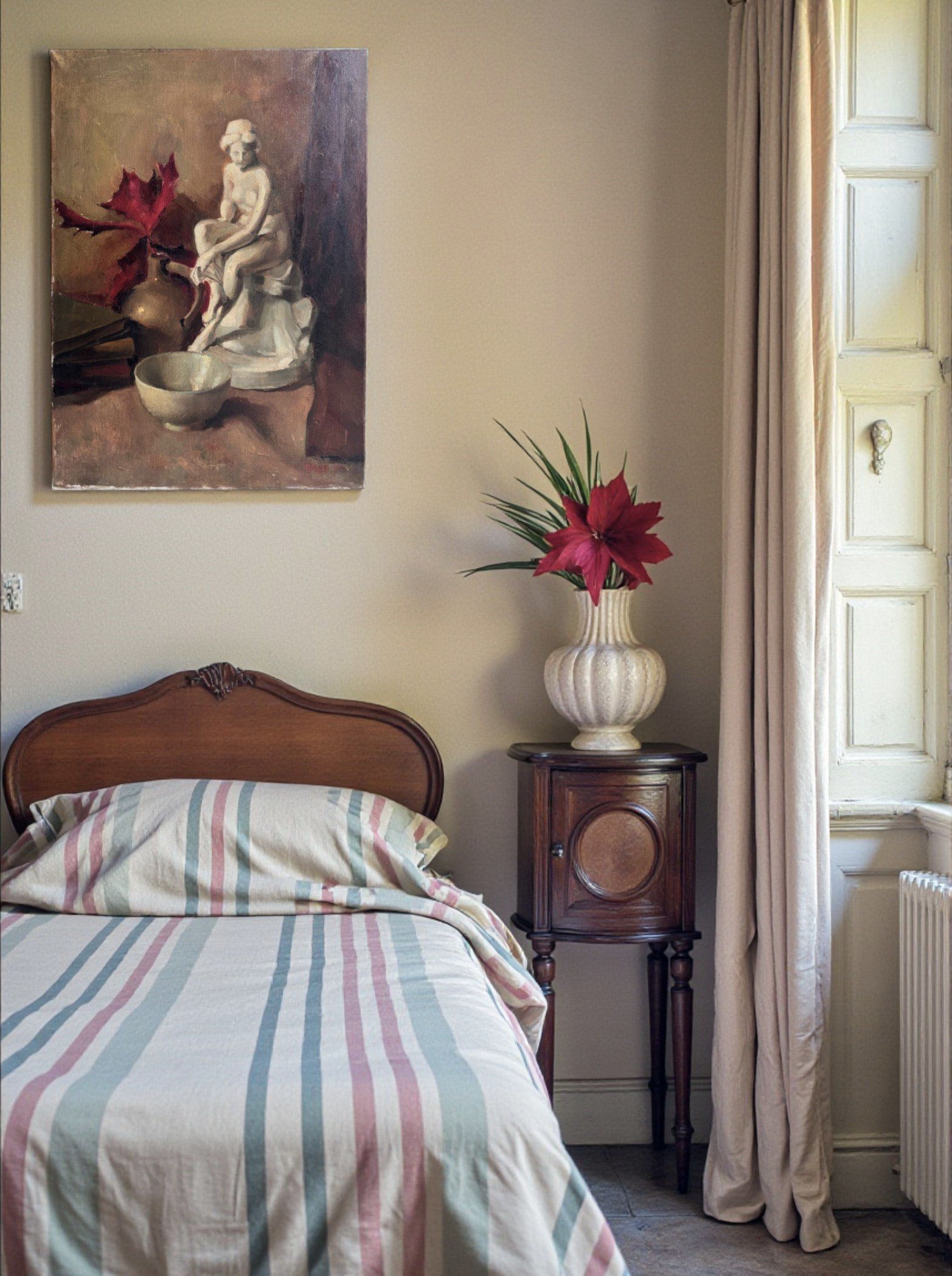 The composition evokes a timeless, contemplative mood and reflects the artistic sensibilities of European studio painting from the 1940s. Subtle brushwork, soft transitions, and balanced light make this artwork a refined addition to both traditional and modern interiors.