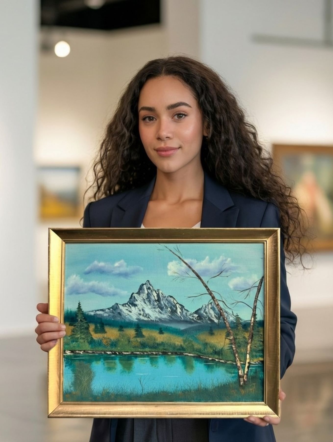 The artwork is signed by the artist, adding authenticity and collectible appeal. Its calming nature theme makes it an excellent statement piece for a living room, bedroom, office, or mountain cabin décor.