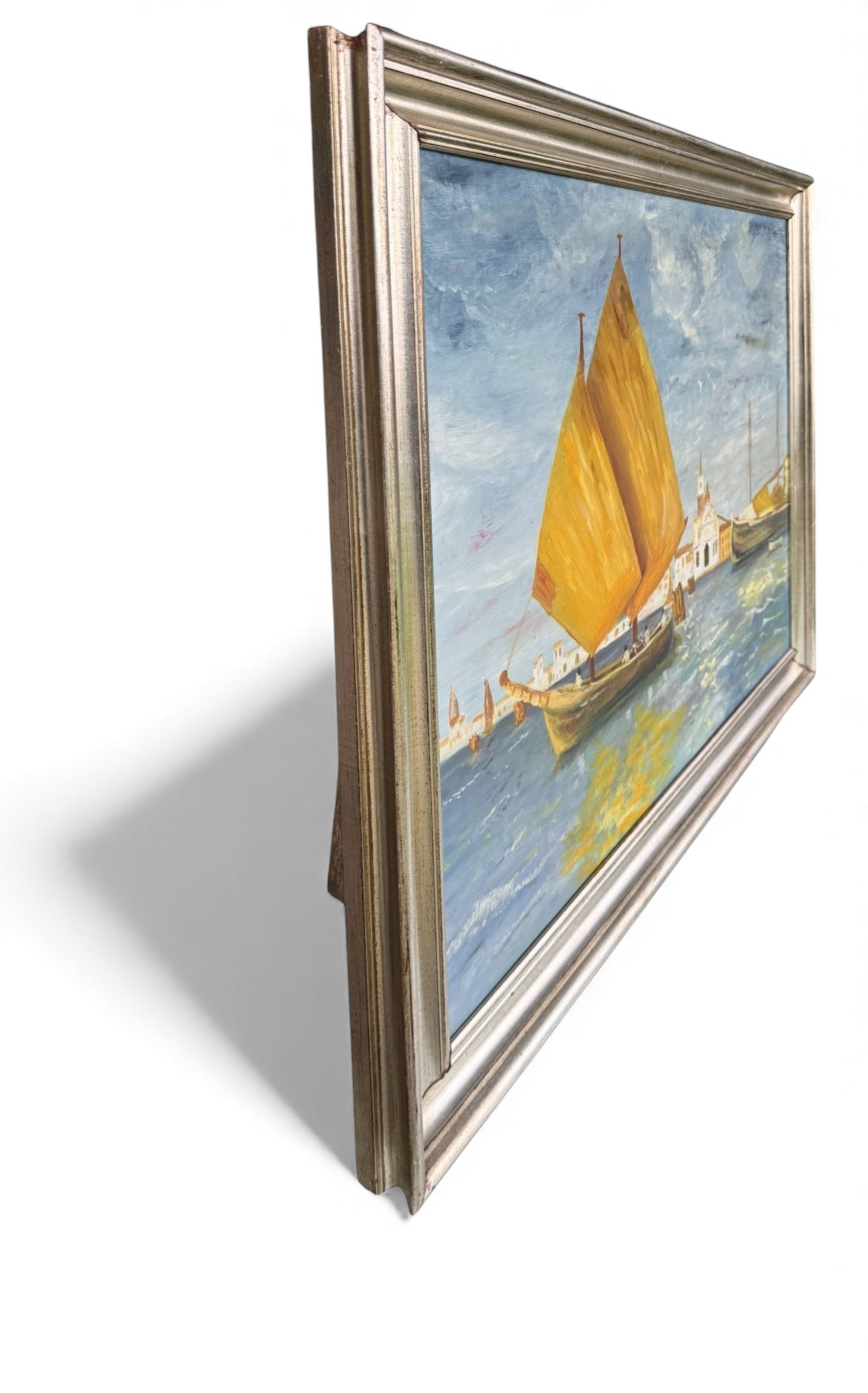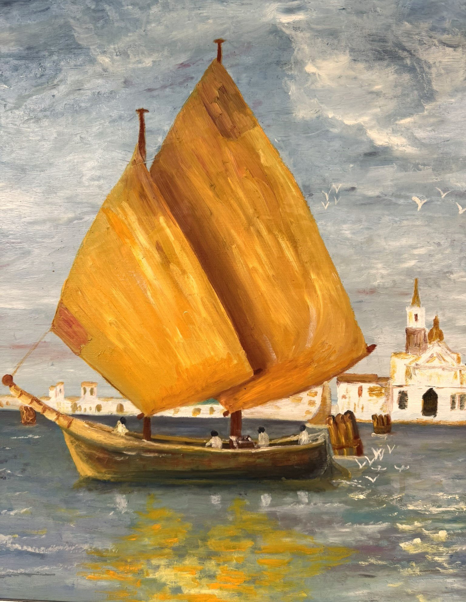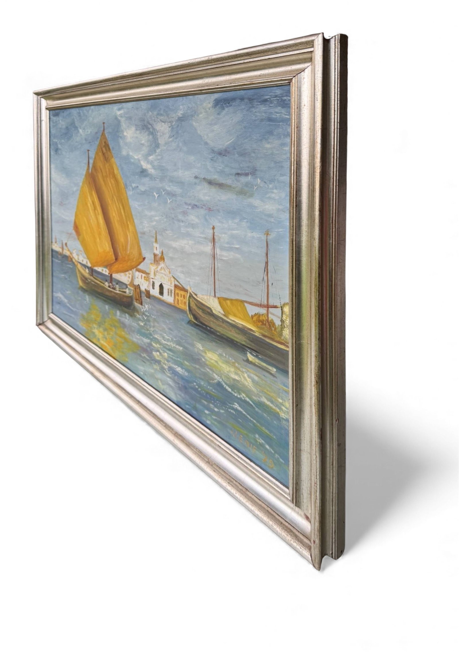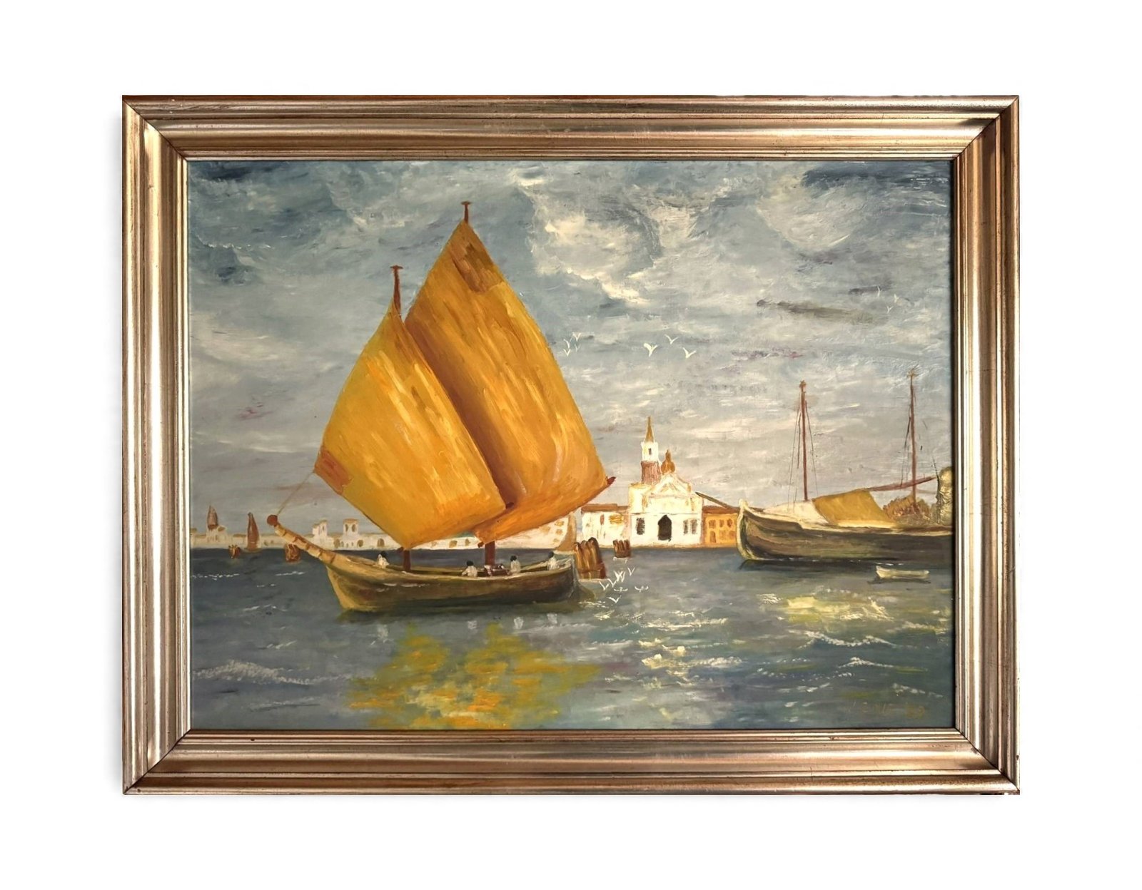 All paintings / Venetian Harbor Painting with Sailboats, signed and dated