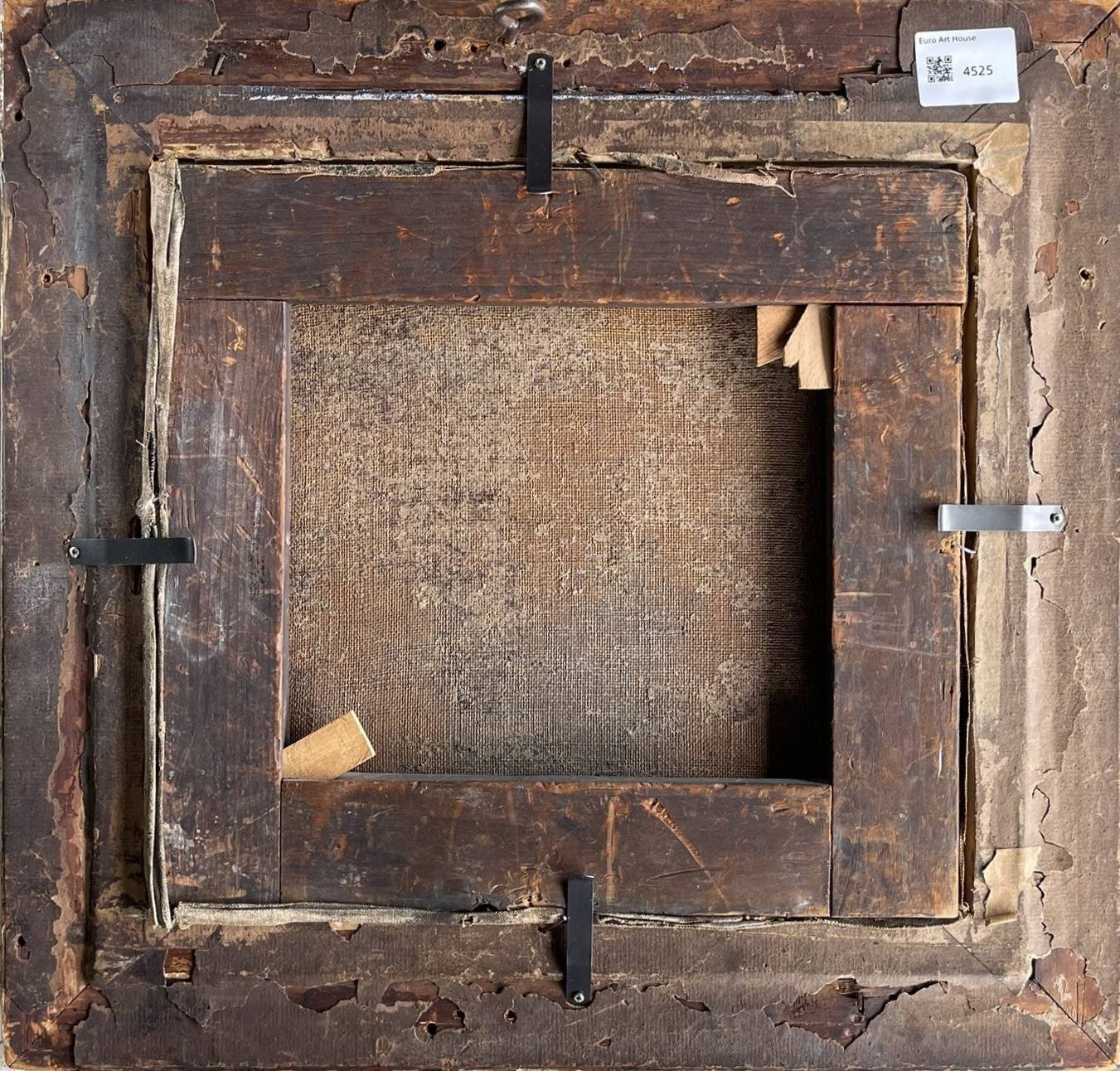 The painting is housed in an ornate, gilded wooden frame, reflecting classic European craftsmanship. The frame shows some signs of age and wear, while the painting exhibits light craquelure, contributing to the authenticity and charm of the work. The painting has already been relined.