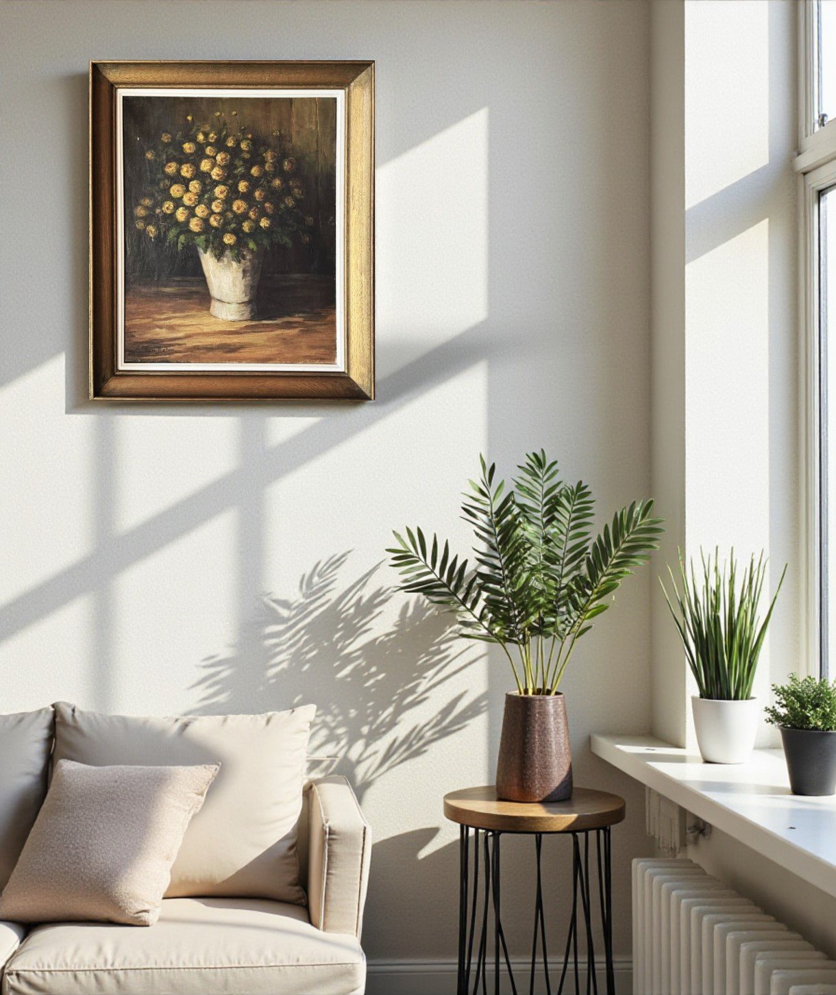 Bring timeless charm to your home with this vintage 1970s still life painting by Belgian artist Karel Van Delm. This beautifully detailed floral arrangement features warm yellow roses set against a dark background, creating a rich and atmospheric composition that suits both traditional and modern interiors.