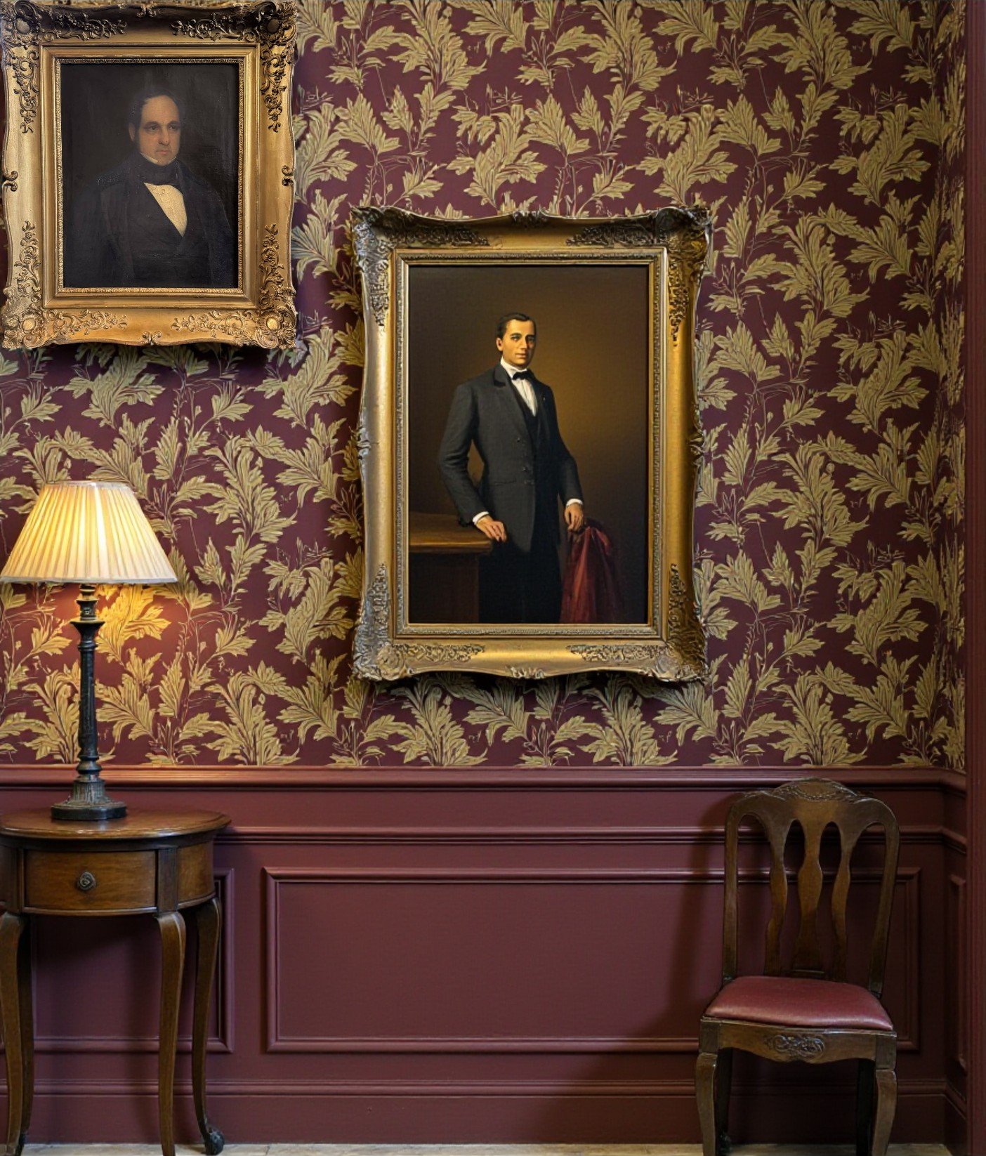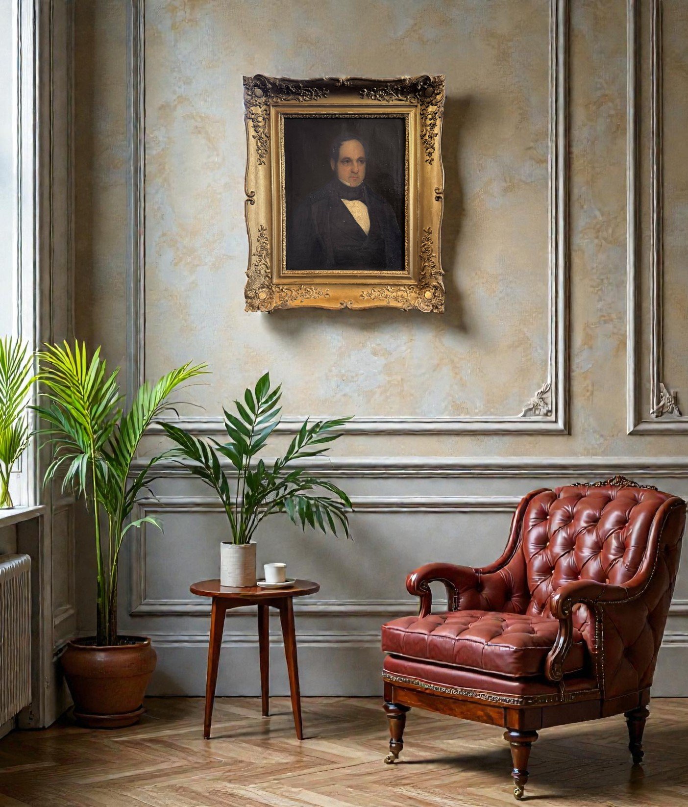 Add a touch of historic elegance to your home with this stately portrait of a gentleman. This work captures the refined style of the mid-19th century. The sitter is depicted in a dark coat with a white vest, set against a classic dark background that highlights his features.