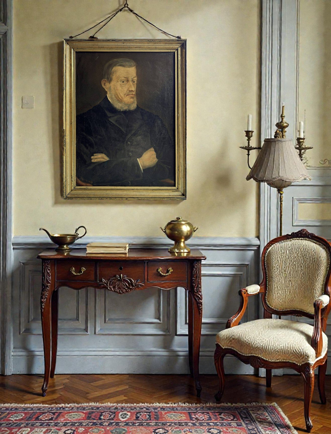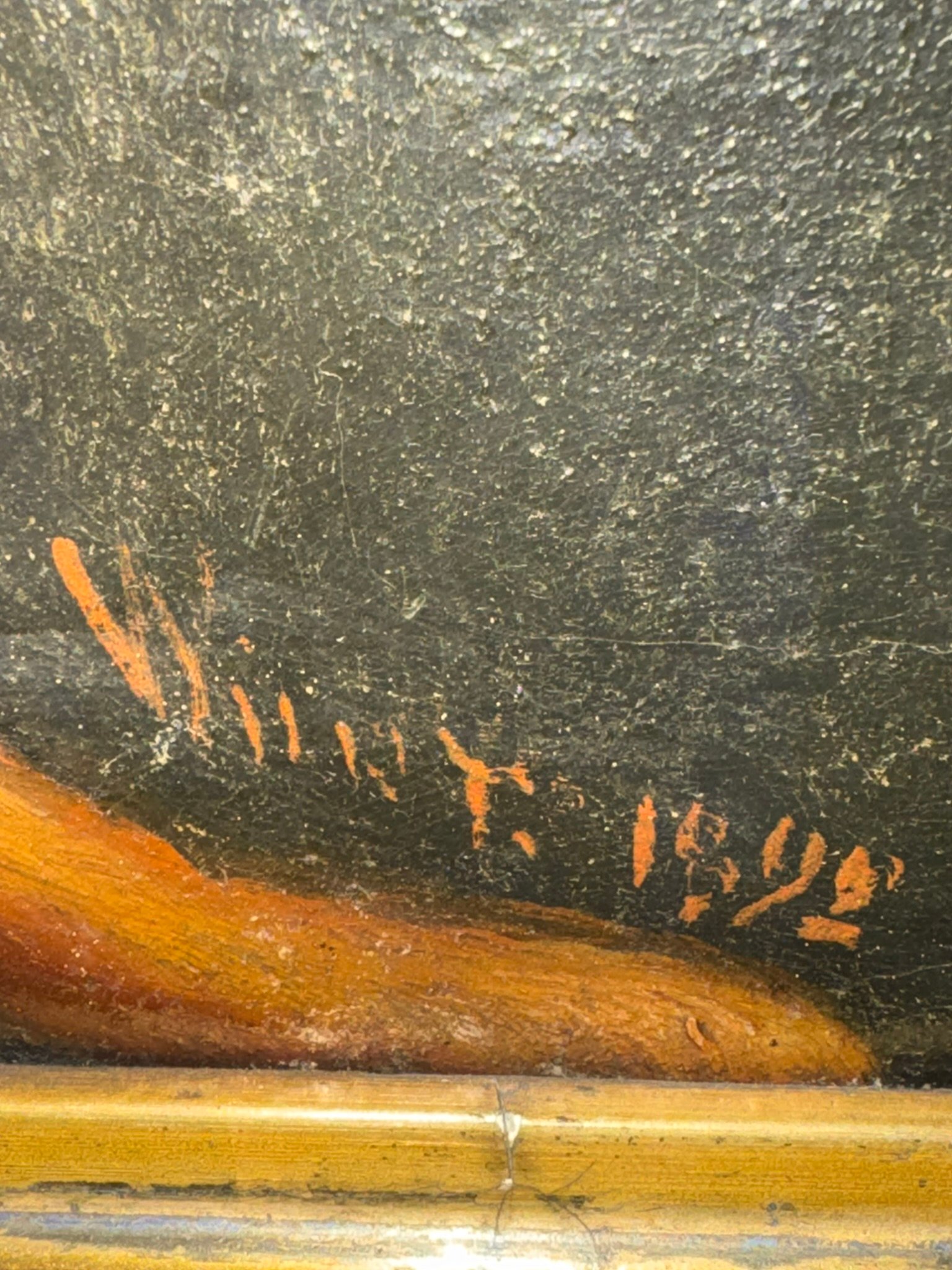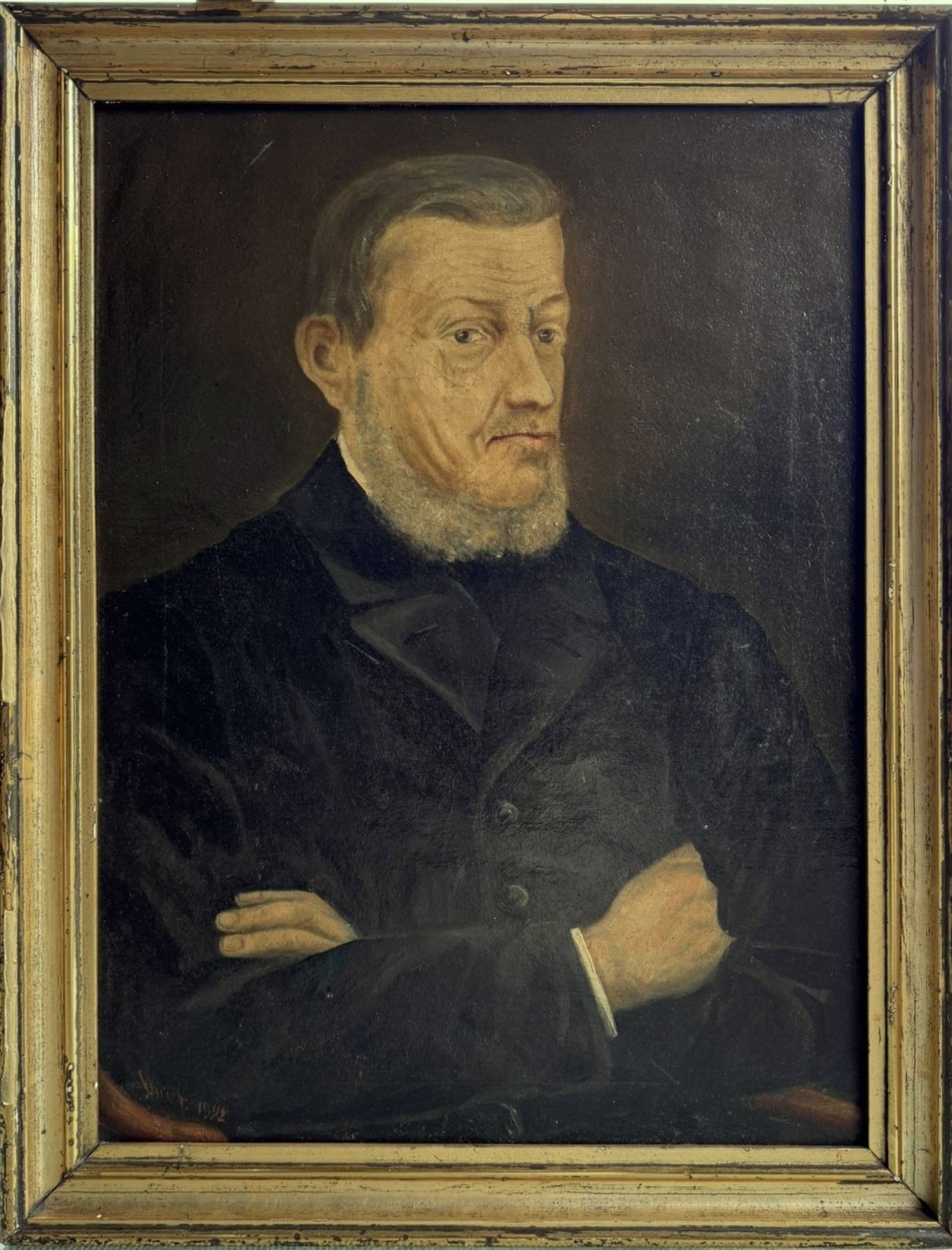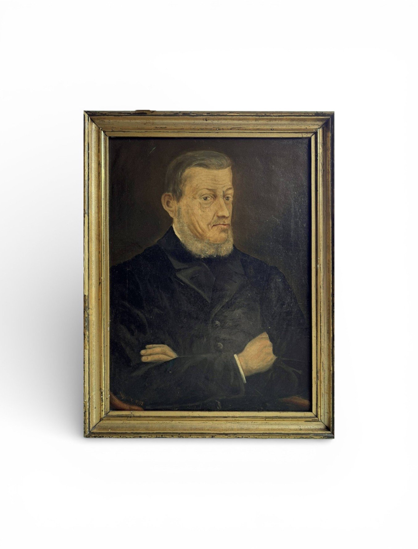 The painting is signed and dates from 1892; the signature is unfortunately illegible, making it an authentic antique artwork with historical presence. It is a timeless piece that would complement both classic and eclectic interiors, ideal for collectors of antique art, historic portraits, or European fine art.