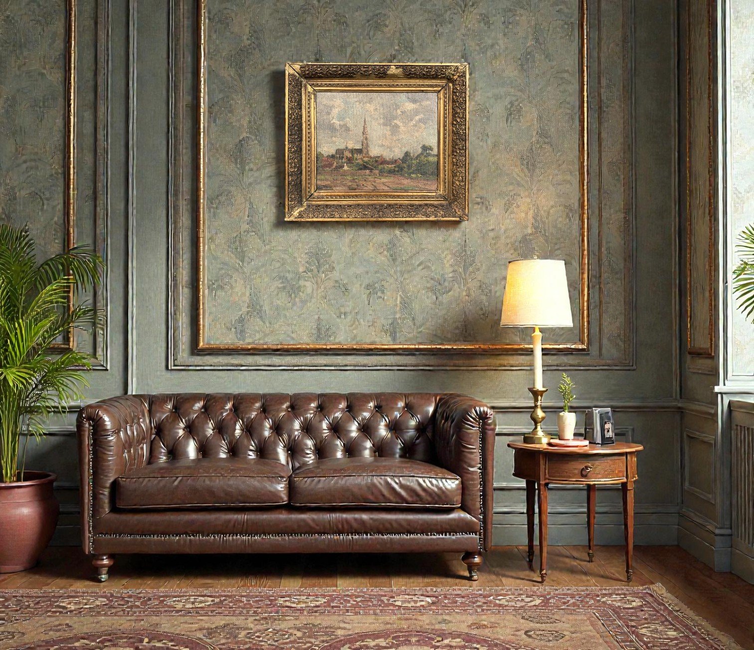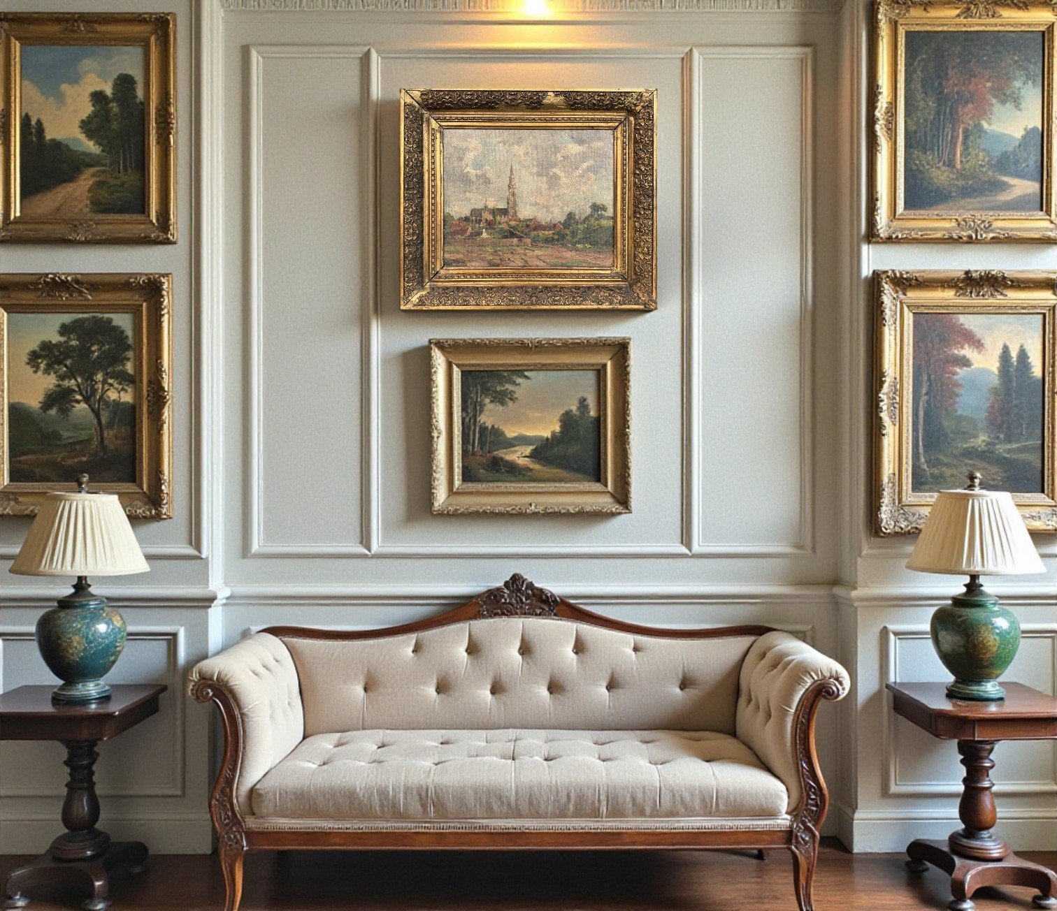 The painting is set in an ornate gold-colored frame that enhances its classic appearance and makes it a perfect statement piece for traditional, eclectic, or antique-inspired interiors.