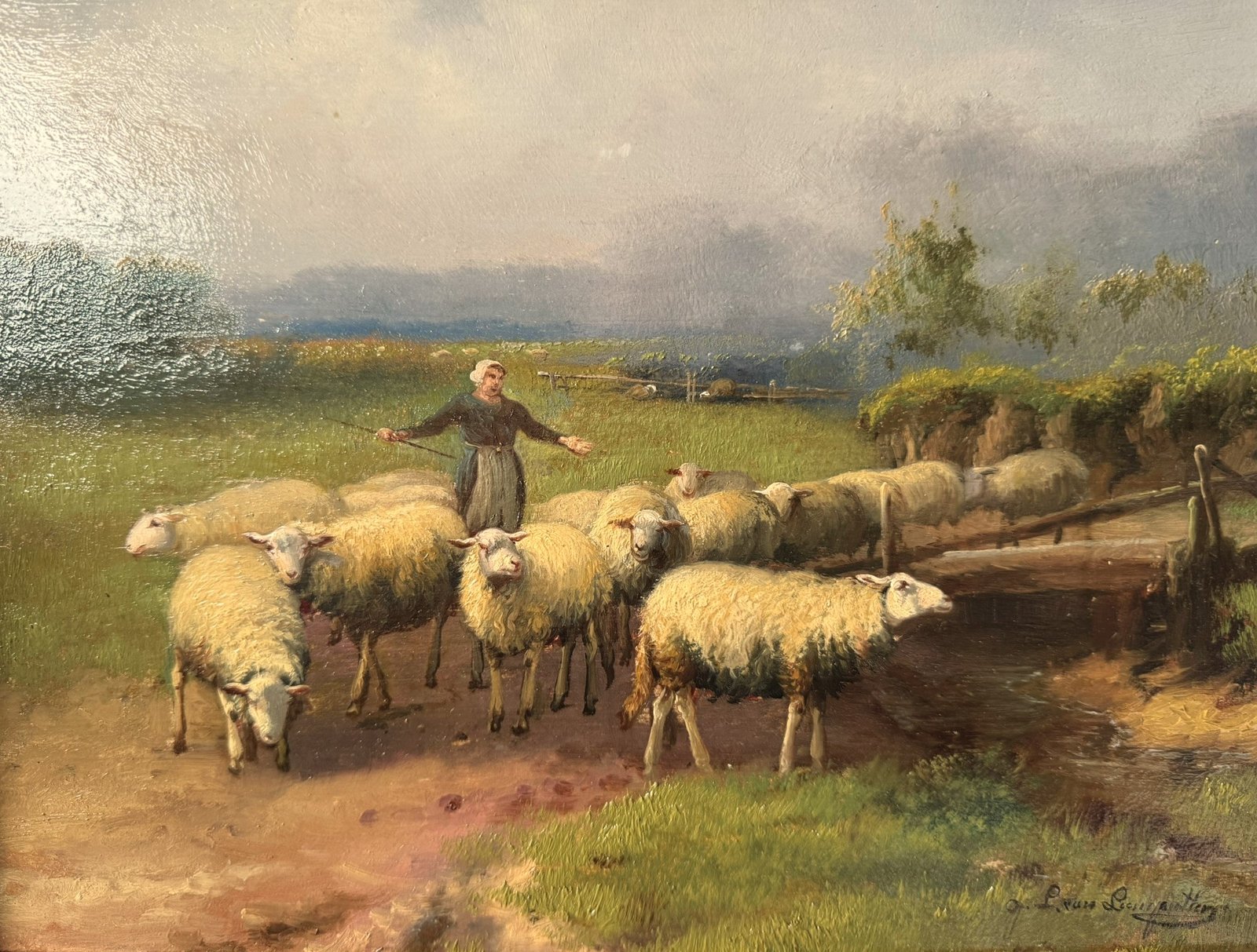 All paintings / Rustic Sheep Herding Scene - Mid-20th Century Signed Art