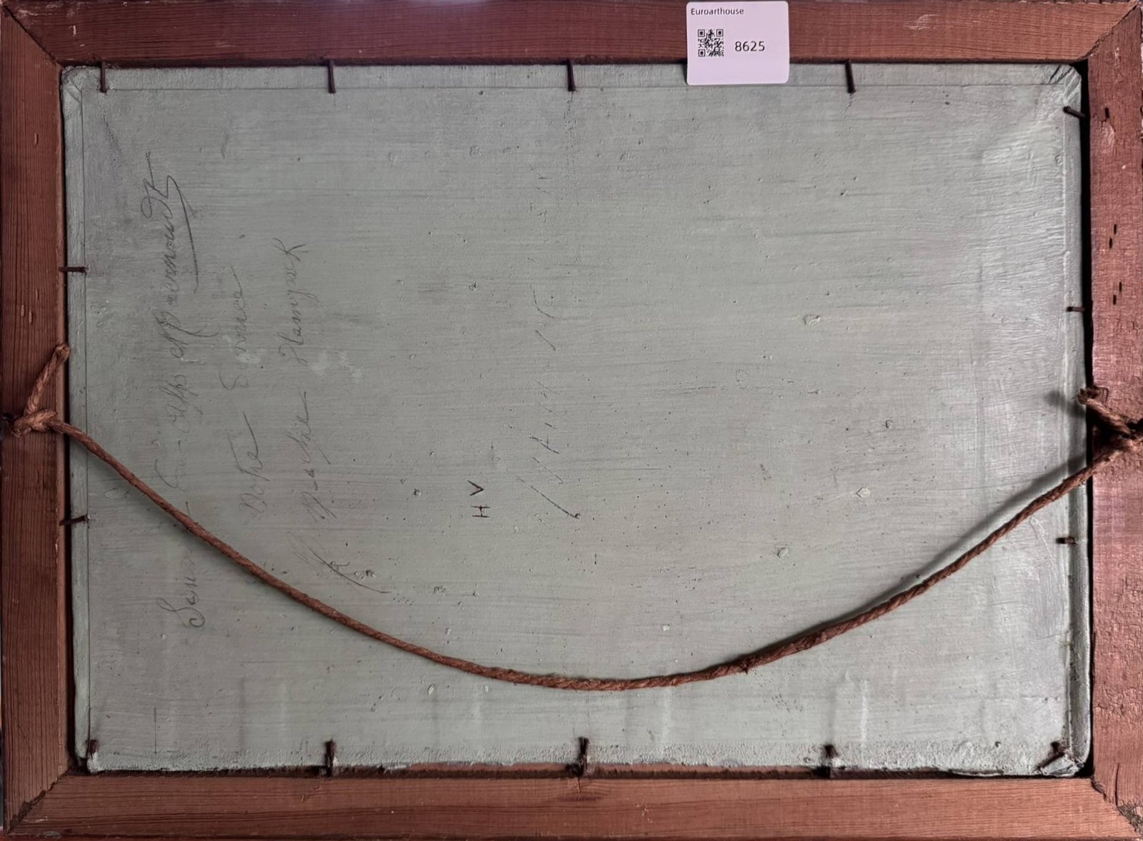 This painting oil on canvas laid on board comes with a gold colored frame, adding a timeless touch that complements the artwork perfectly.